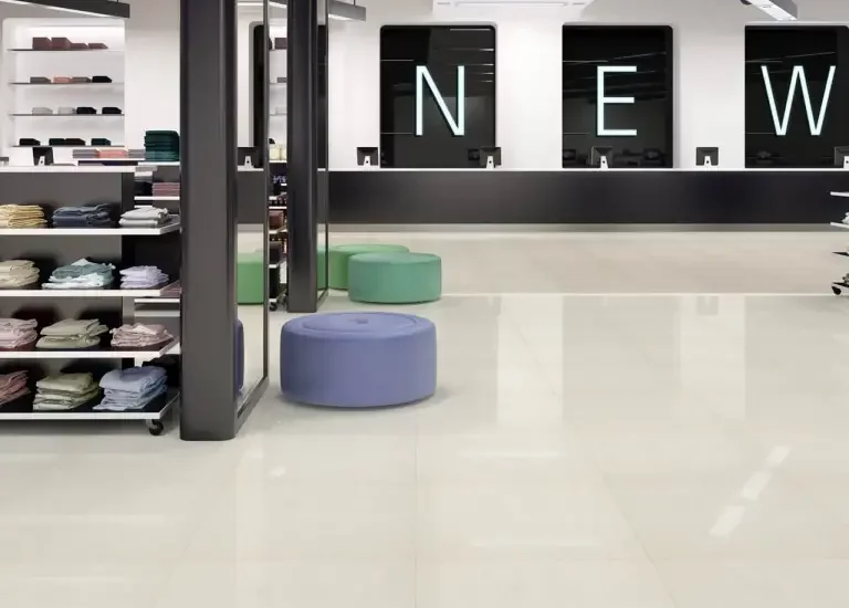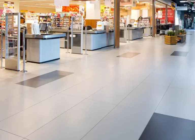 Dla mniej użytkowanych przestrzeni centrów handlowych (oddalonych od stref wejściowych i głównych traktów komunikacyjnych), zazwyczaj wystarczą płytki ceramiczne o klasie ścieralności PEI 4/12000, PEI 4/6000 czy PEI 4/2100 obrotów.