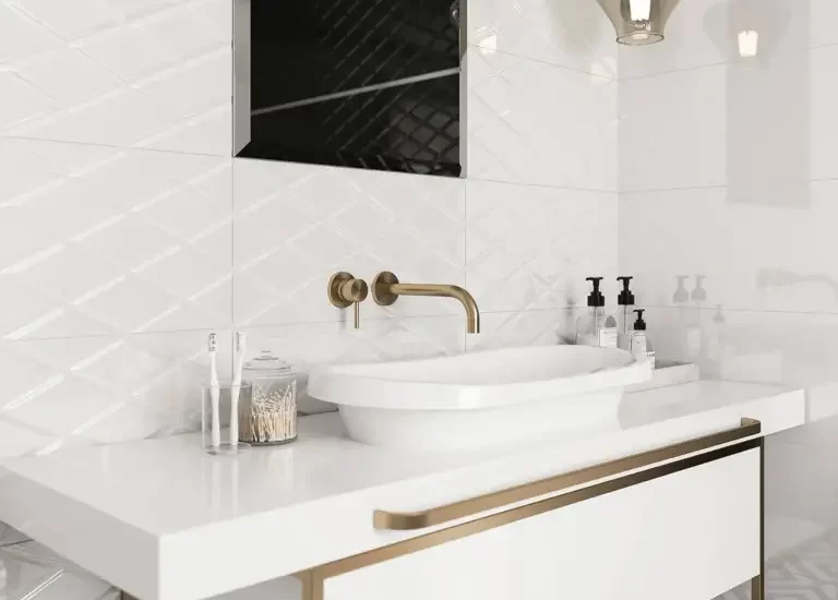 Wykorzystaj odblaski – płytki o błyszczącym szkliwie, sprzęty i dekoracje metalizowane.