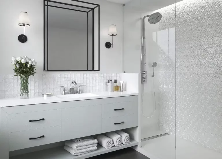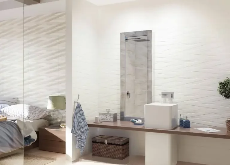 Błyszczące powierzchnie i materie odbijają światło tak, jak lustro. Możesz śmiało zastosować je na dużych powierzchniach, wykorzystując błyszczące szkliwo płytek ceramicznych. Możesz użyć ich również w zdobieniach – np. w postaci metalizowanych ceramicznych listew, mozaik czy też metalowych wieszaków, lamp itp.