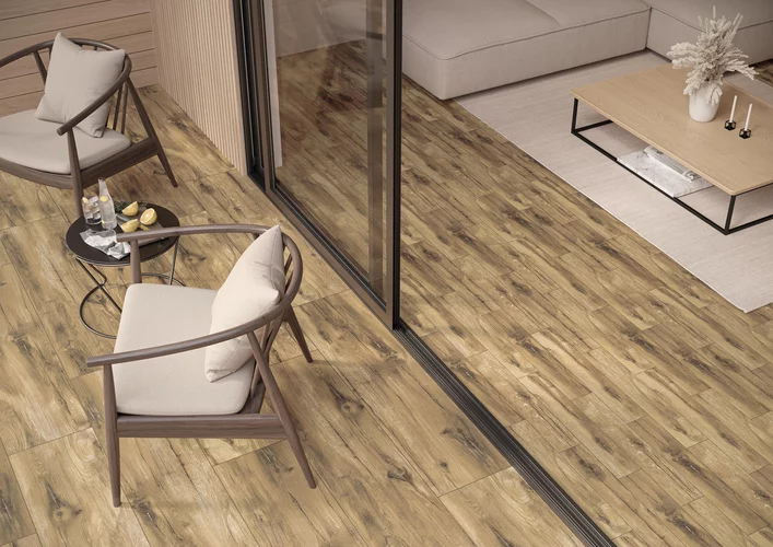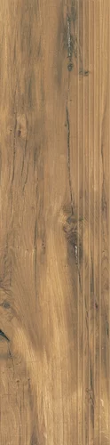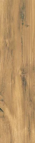 Rustykalny, czyli charakterystyczny, wiejski, ludowy a często nieokrzesany. W ceramicznym wydaniu cechy te podkreślane są przez matową, nieodbijającą światła powierzchnię, bogatą w spękania i sęki. W ten sposób prezentuje ona mocny, nadszarpnięty czasem charakter – jeszcze bardziej wyrazisty i realistyczny. Jednocześnie kolorystyka jaśniejszego oraz ciemniejszego brązu kolekcji jest ciepła, naturalna i wspaniale równoważy rustykalny, a zarazem ascetyczny wygląd drewna. Odwzorowanie drewna w ten sposób idealnie odnajdzie się zarówno w klimatycznym domu w górach, starej chacie na wsi, jak i w nowoczesnym, czy industrialnym wnętrzu, a spójność zachowasz również na zewnątrz poprzez płyty tarasowe 2.0. Jego żywe, dzikie oblicze stanie się świetnym dopełnieniem innych surowców, jak kamień, czy metal. W takich pomieszczeniach możesz funkcjonować spokojnie i zgodnie z rytmem natury, ciesząc się jednocześnie oryginalnością i śmiałością form oraz wzorów drewna.