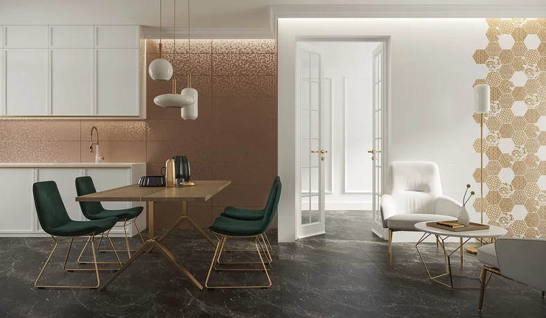 Begrüßen Sie die Sonne mit uns. Schaffen Sie eine geheimnisvolle Atmosphäre voll von orientalem Charme, flimmerndem Design mit silber-goldenen Farbtönen. Flüchten Sie in Gedanken nach Fernost, wo seit Jahrhunderten Harmonie und Details gepflegt werden. Sie haben als direkte Inspiration dafür gedient, die Jubiläumskollektion der Fliesen Shiny Lines zu projektieren, die geschaffen wurde, um die 30jährige Präsenz von Ceramika Paradyż auf dem polnischen Markt zu ehren. Jetzt können Sie Ihr Interieur schmücken.