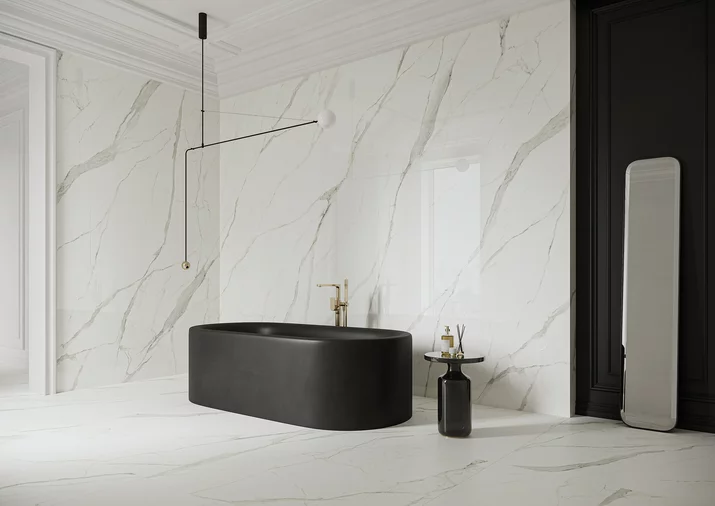 Calacatta My Way is a unique way to arrange interiors with ceramic tiles inspired by the unearthly beauty of marble. Advanced digital printing has been used to ensure the rock pattern is both original and unique. Lappato technology allows to obtain mirror, wavy surface producing diversified light reflection effect.