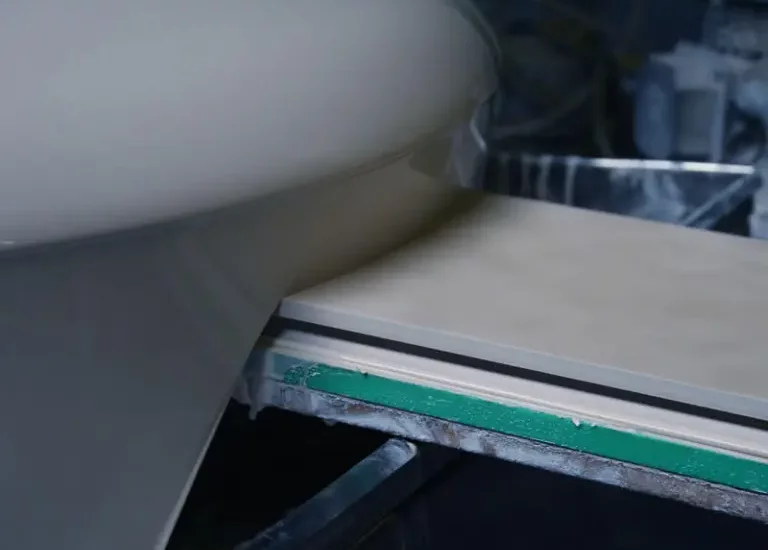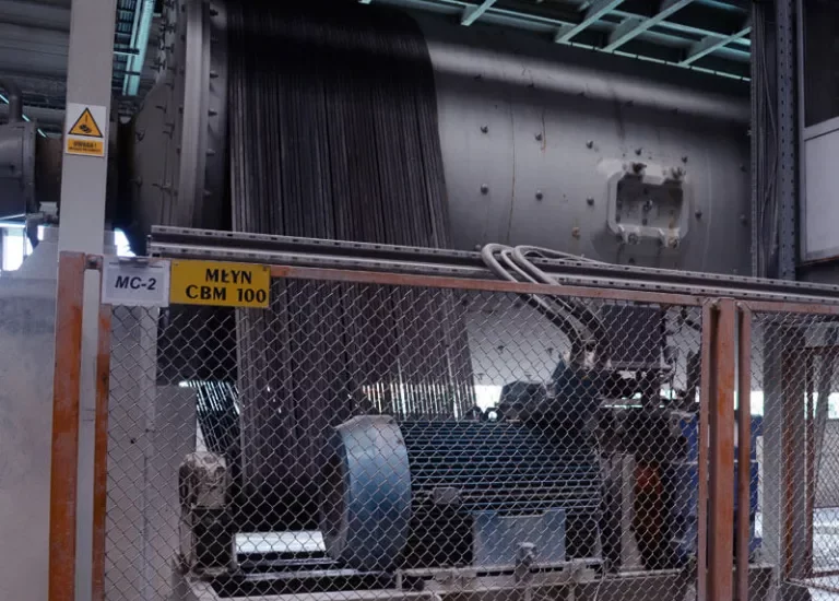 W potężnych młynach pobrane z magazynu surowce mineralne, po dodaniu wody, mielone są do postaci płynnej mieszanki. Już jako masa lejna, wędrują następnie do ogromnych zbiorników.