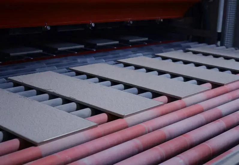Po dosuszeniu płytki wprowadzone zostają do pieców rolkowych. Specjalne systemy komputerowe stopniowo zwiększają temperaturę wypalania, aż do określonej temperatury maksymalnej, by następnie równo stopniowo ją obniżać. Płytki bogato zdobione wypalane są kilkukrotnie, bowiem każda z pokrywających je substancji wymaga wypalania w innej temperaturze. Z tego powodu elementy takie nazywamy dekoracjami wielokrotnego wypału.