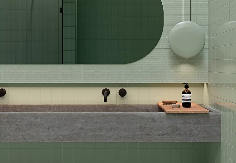 Aranżacje łazienek z użyciem miętowego koloru mogą łączyć w sobie liczne kontrasty, jak i stonowane przejścia np. pomiędzy beżem, miętą i bielą. Miętowe barwy w łazienkowych aranżacjach dodają przytulności, zachwycają wyglądem, a także perfekcyjnie łączą się z motywami drewna, kamienia i betonu. Postaw na lekkość i wybierz miętowe płytki ceramiczne do swojej łazienki. To materiał wykończeniowy wpisujący się niemalże we wszystkie style aranżacyjne – począwszy od klasycyzmu, a kończąc na nowości wnętrzarskiej, czyli stylu modern organic.