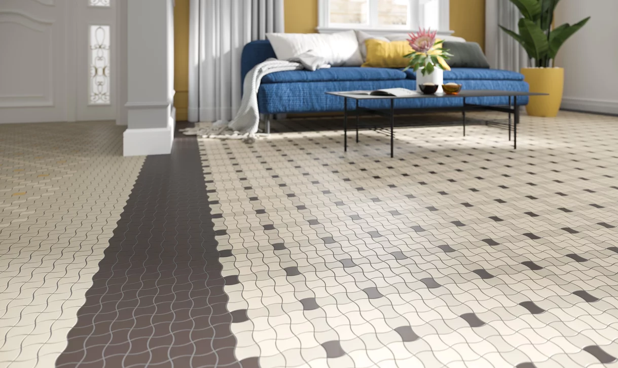 Salon w kamienicy możesz zaaranżować tak, aby domownikom wydawało się, że czas się w nim zatrzymał. Jednym z kluczowych elementów takiego wystroju są płytki ceramiczne, które w aranżacji vintage stają się niemal poetyckim tłem dla całej kompozycji. Szczególnie polecamy serię będącą głębią elegancji, czyli kolekcję Desire Paradyż. To płytki ceramiczne wyróżniające się ciemną kolorystyką przeplataną żylastymi wzorami w białej barwie. Różnorodne wzory można uzyskać poprzez kultowe tzw. “gorseciki” z kolekcji Modernizm. Taki materiał to świetna alternatywa na podłogę zamiast parkietu.