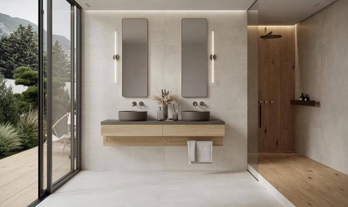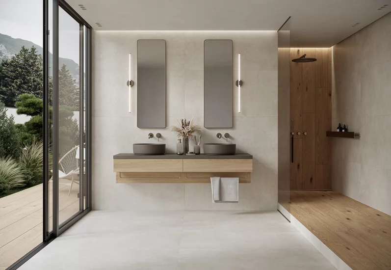 Harmonijna łazienka w beżu i bieli powinna być spójna, ale i dynamiczna. Spróbuj połączyć kolory gliny, grafitu, a nawet antracytu z kolekcji Desertdust Paradyż, a zobaczysz, że aranżacja łazienki będzie subtelnie łączyć ekspresję z elegancją.