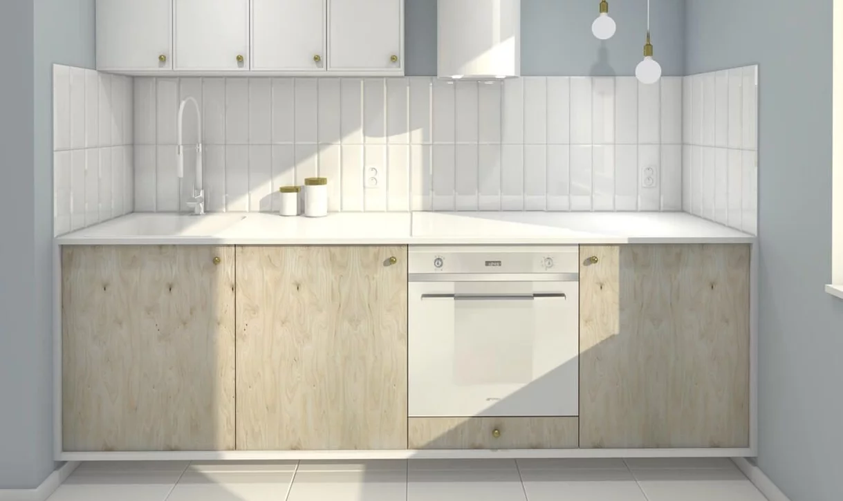 Bardzo jasna kuchnia z pionowymi białymi kaflami