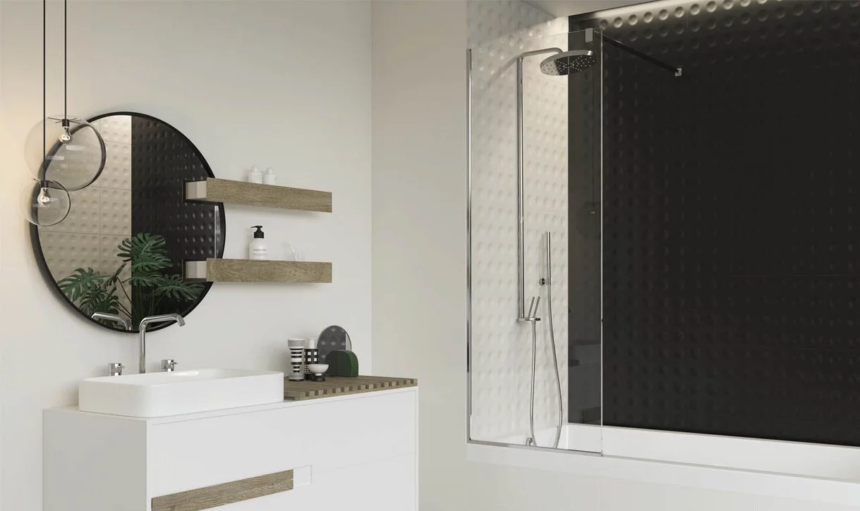 Ciemna łazienka wcale nie musi być przytłaczająca! Czarne, matowe płytki z delikatną strukturą i dodatki w jaśniejszych kolorach czynią ją elegancką i szykowną.