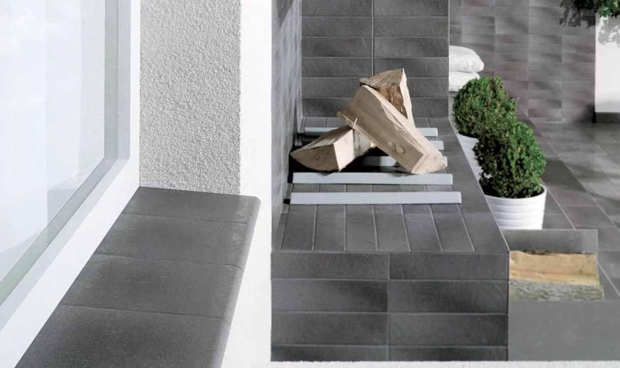 Biel i szarość klinkieru na tarasie