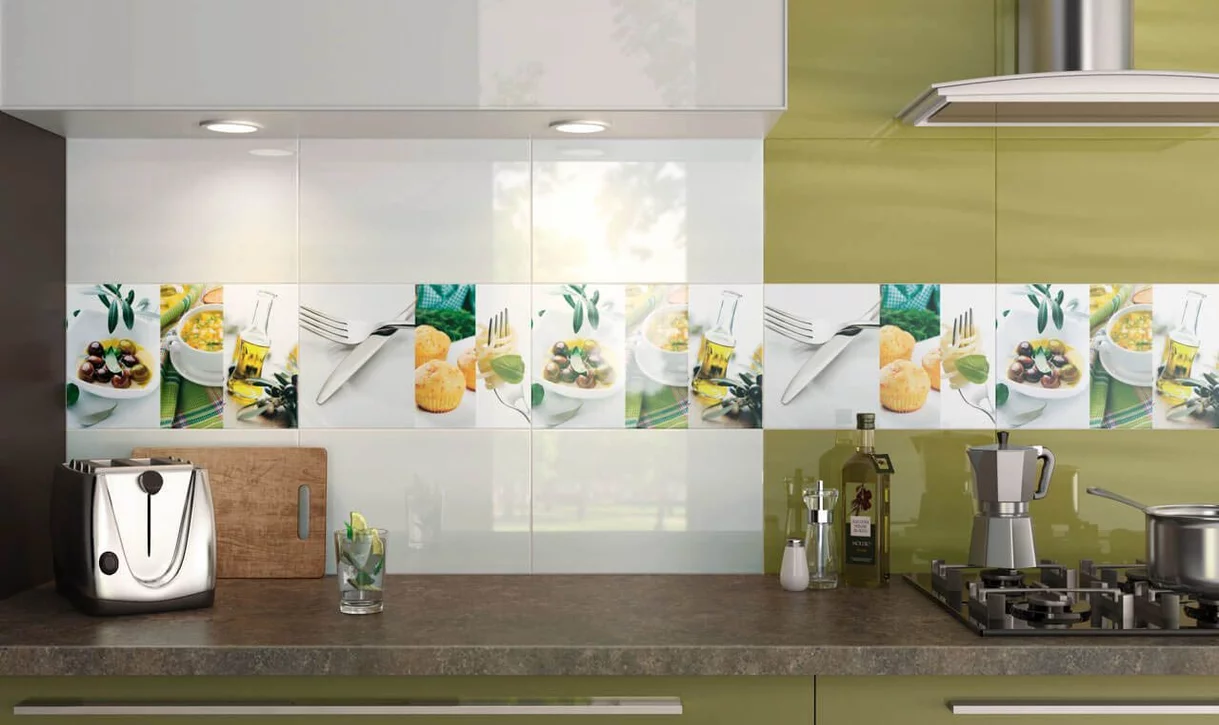 Przestrzeń kuchenna przypomina o tym jak jeść pięknie i pysznie, w smacznym otoczeniu paska fotografii ujmujących to, co w daniach najlepsze. Przechodząc przez przestrzeń do przygotowywania jedzenia, zachęca do codziennego eksperymentowania. Oliwki i zielone elementy dekoracyjne konsekwentnie łączą się z zielonymi płytkami.