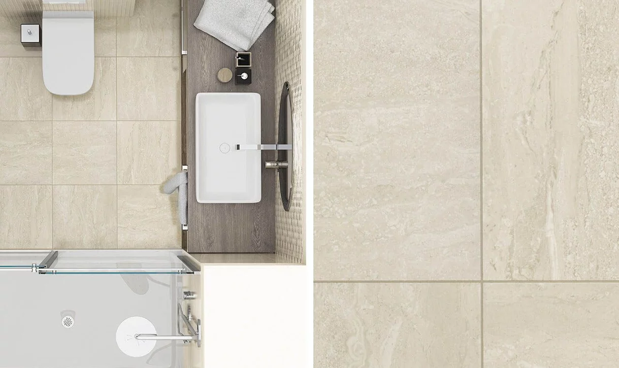 Jasna kolorystyka niedużej łazienki ma za zadanie uczynnić ją bardziej przestronną, a także przejrzystą. Zastosowanie delikatnych barw w strefie podłogowej oraz ściennej potęguje zamierzony efekt. Przestrzeń wydaje się dzięki temu czystsza i bardziej poukładana.