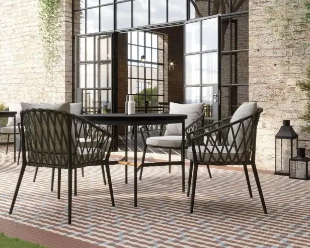 Ogródek restauracyjny zyska na ekskluzywności, jeśli posadzkę wykonasz z drobnych, efektownych mozaik, ułożonych w ceramiczne dywany.