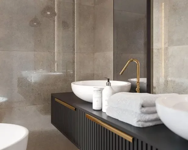 Wanna powinna wpisywać się w luksusowy charakter wnętrza (jeśli możesz postaw na wolnostojącą wannę o eleganckich, subtelnych liniach).