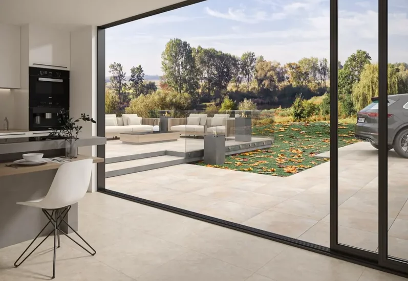 Etap planowania w aranżacji wnętrz jest kluczowy. To od niego zależy efekt końcowy naszej realizacji. Dlatego urządzając salon z wyjściem na taras powinniśmy myśleć całościowo o obu tych strefach. Wtedy możemy być pewni wspaniałego efektu! Podłoga na taras to jeden z pierwszych etapów. Przedłużenie tarasu do wnętrz – do sypialni, salonu czy kuchni, niemal naturalnie wymusza wykorzystanie tu jednolitej podłogi. Może być ona taka sama (na co pozwalają już właściwości techniczne i wzornicze płytek), ale może być też delikatnie zróżnicowana, np. odcieniem danego koloru. Dalsze planowanie może wzmacniać połączenie jednej i drugiej przestrzeni, ale może też ciekawie je od siebie oddzielić. Wystarczy, że salon z tarasem lub kuchnia z tarasem zostaną urządzone lub udekorowane w różny sposób. Kuchnia z wyjściem na taras może być utrzymana na przykład w stylu nowoczesnym, a sam taras w zupełnie innym stylu, np. rustykalnym czy boho. Nie bój się sięgać po takie rozwiązania – wnoszą one ożywczą świeżość do aranżowanych przestrzeni, nie zabierając im spójności i jedności.