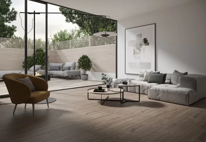 Łącząc strefę wewnętrzną i zewnętrzną, np. salon z tarasem w naszym domu, najlepiej zaplanować ich aranżację z wykorzystaniem możliwie neutralnych i ponadczasowych wzorów. Będą one świetną bazą dla różnych aranżacji. Jako tło do realizacji dekoracyjnych prób podłoga na taras sprawdzi się naprawdę dobrze! To właśnie podłoga jest największą powierzchnią, która łączy przestrzeń indoor i outdoor. Wybór zawsze modnego motywu, jaki zdecydujemy się na niej zastosować sprawi, że nasza podłoga na taras będzie na tyle neutralna, że idealnie uspójni strefę wewnętrzną i zewnętrzną. Wybierając stonowaną kolorystykę, czy ponadczasowe motywy ułatwiamy również sobie ewentualne przyszłe zmiany dekoracji. Jeśli zdecydujemy, że chcemy zmienić wystrój salonu lub tarasu będziemy mogli swobodnie to zrobić, dodając inne elementy kolorystyczne lub dekoracje w zupełnie nowym stylu aranżacyjnym.