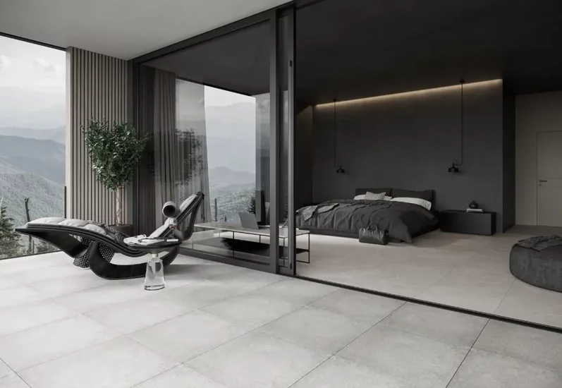 Podłoga na taras, która ma również wchodzić do naszych wnętrz powinna być dobrana tak, by ułatwić nam dobór stylu aranżacji obu tych pomieszczeń. Jeśli chcemy urządzić je w tym samym stylu pamiętajmy o zróżnicowaniu wyposażenia. Salon lub sypialnia z wyjściem na taras będą potrzebować innych sprzętów i mebli niż sam taras, nawet zaaranżowany w tej samej stylistyce. To, czym możemy połączyć strefę indoor i outdoor to, oprócz takiej samej podłogi, odpowiednie dodatki. To one często decydują o charakterze danej przestrzeni. Tak samo może być również tutaj – neutralne kolorystycznie płytki na taras, meble właściwe danej funkcji pomieszczenia, a do tego dodatki, które łączą obie te przestrzenie. Możemy wybrać delikatne ozdoby w stylu boho, które świetnie sprawdzą się na tarasie – łapacze snów, dzwoneczki, czy materiałowe i drewniane dekoracje. Sypialnia z tarasem będą też dobrze prezentować się z ozdobami w stylu eko, hygge, czy nawet industrialnym. Takie subtelne łączenie różnych przestrzeni pozwala na jednoczesne zachowanie odrębności każdej z nich.