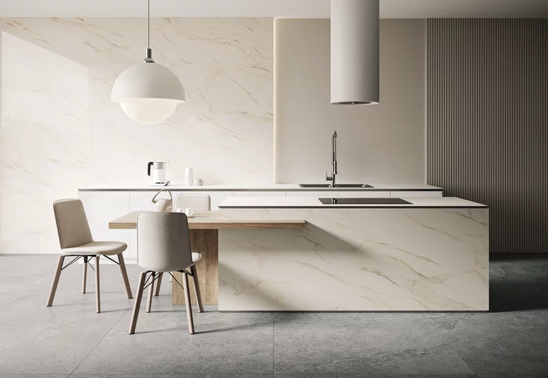 Szarość i biel wystarczą, by stworzyć oryginalne, piękne wnętrza. Śmiało korzystaj z bogactwa szarych odcieni. Nie bój się położyć szarych płyt dużego formatu na podłodze łącząc je z białymi kuchennymi szafkami. Podkreśl funkcję jadalną pionowym pasem lameli ściennych o nasyceniu szarości. Rozjaśnij wszystko bielą – a uzyskasz zachwycający efekt. Biało-szary wystrój sprawdzi się nie tylko w pokojach urządzonych w stylu industrialnym.