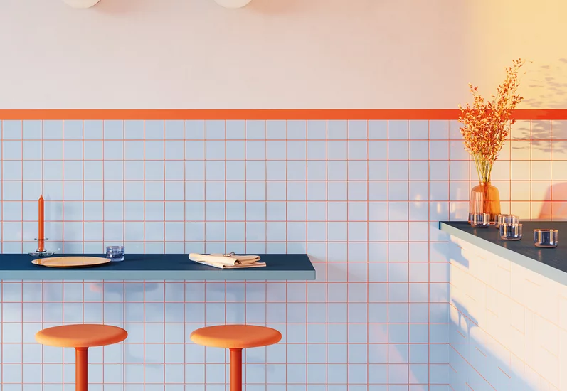 Jeśli chcemy wyeksponować kształt lub format płytek , wskazany będzie wybór spoiny o barwie kontrastowej dla bazowego koloru ceramiki. Pamiętajmy jednak, by kontrastowa barwa pozostała w zgodzie z pozostałymi elementami wystroju i harmonijnie go dopełniała.