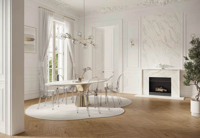 Spieki kwarcowe to płyty o dużej powierzchni i niewielkiej grubości, produkowane z glin, piasku oraz naturlanych barwników. To materiał w pełni naturalny, który w trakcie produkcji jest poddawany działaniu ekstremalnie wysokich temperatur oraz intensywnego ciśnienia. Zalety spieków wielkoformatowych do zastosowania na obudowę kominka domowego to: