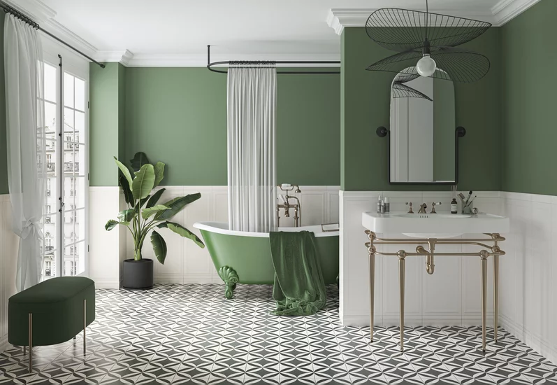 Jasne, neutralne kolory ścian, takie jak biel, szarość czy beż, będą świetnym tłem dla kolorowych płytek, pozwalając im w pełni zaistnieć w przestrzeni.
