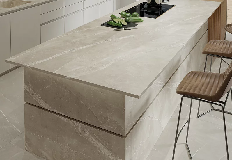 Trwałość i estetyka to główne kryteria doboru materiałów. Naturalne surowce, jak drewno, kamień czy metal, są szczególnie cenione. Jednak to spiek kwarcowy Ritual TRI-D Taupe doskonale łączy te cechy, oferując zarówno elegancki wygląd, jak i praktyczne właściwości. Jego ciepłe odcienie i charakterystyczne żyłkowanie dodają wnętrzu wyjątkowego charakteru.