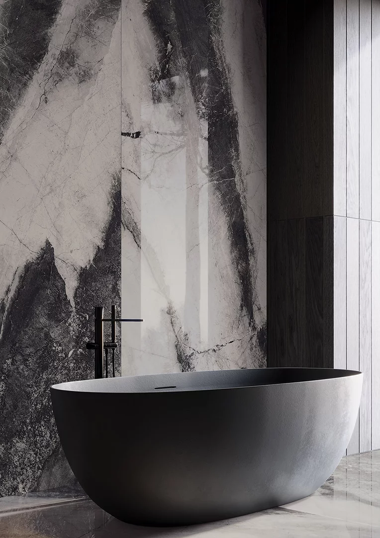 Wyrazista płytka ścienno-podłogowa umożliwi zabawę konwencją, idealnie sprawdzając się w luksusowych salonach, ekskluzywnych łazienkach czy designerskich kuchniach. Może tworzyć bazę aranżacji nadając jej nieco tajemniczego i urzekającego charakteru lub stać się przykuwającym oko motywem dekoracyjnym. Kolekcja fantastycznie komponuje się zarówno z ciemnym drewnem oraz metalicznymi dodatkami. W minimalistycznych i monochromatycznych wnętrzach stanowi wyrazisty, odważny i przełamujący kompozycję akcent, jako esencja nowoczesnego luksusu – pełnego klasy, ale też odrobiny ekstrawagancji.