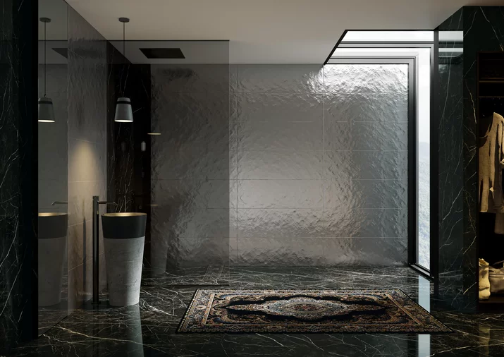 SLEEPING BEAUTY to kolekcja płytek ściennych w kolorze białym i srebrnym. Płytka matowa jak i w połysku, gładka oraz ze strukturą, m.in. młotkowanej blachy. Płytki z kolekcji SLEEPING BEAUTY do zastosowania w łazience, kuchni i salonie, a także w obiektach inwestycyjnych. Format występujący w kolekcji to 40 x 120 cm.