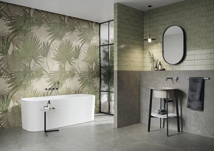 Wśród tundrowych lasów, czy amazońskich dżungli urzekną Cię niezliczone odcienie zieleni. Wprowadź je do swojego otoczenia poprzez roślinną dekorację dającą spokój i wytchnienie na płytkach 29,8 x 89,8 cm. Patrząc na nie, niemal poczujesz zapach roślinności i niezbadanej dzikości natury owianej subtelną mgiełką tajemniczości. Oliwkowa zieleń płytek nawiązujących do paneli ściennych czy płytki o strukturze piecowego kafla czerpiącego z kunsztu tradycyjnej ceramiki wzbudzą poczcie bezpieczeństwa i stabilności. Harmonijnym uzupełnieniem dla płytek bazowych jest dekoracja o charakterze mozaiki, która syntetycznie łączy nowoczesność z autentycznym rzemiosłem. Dzięki temu zobaczysz, jak zróżnicowany i czarujący potrafi być świat. Mimo tego, że z każdym dniem jest on coraz trudniej dostępny, teraz możesz go mieć na wyciągnięcie ręki.