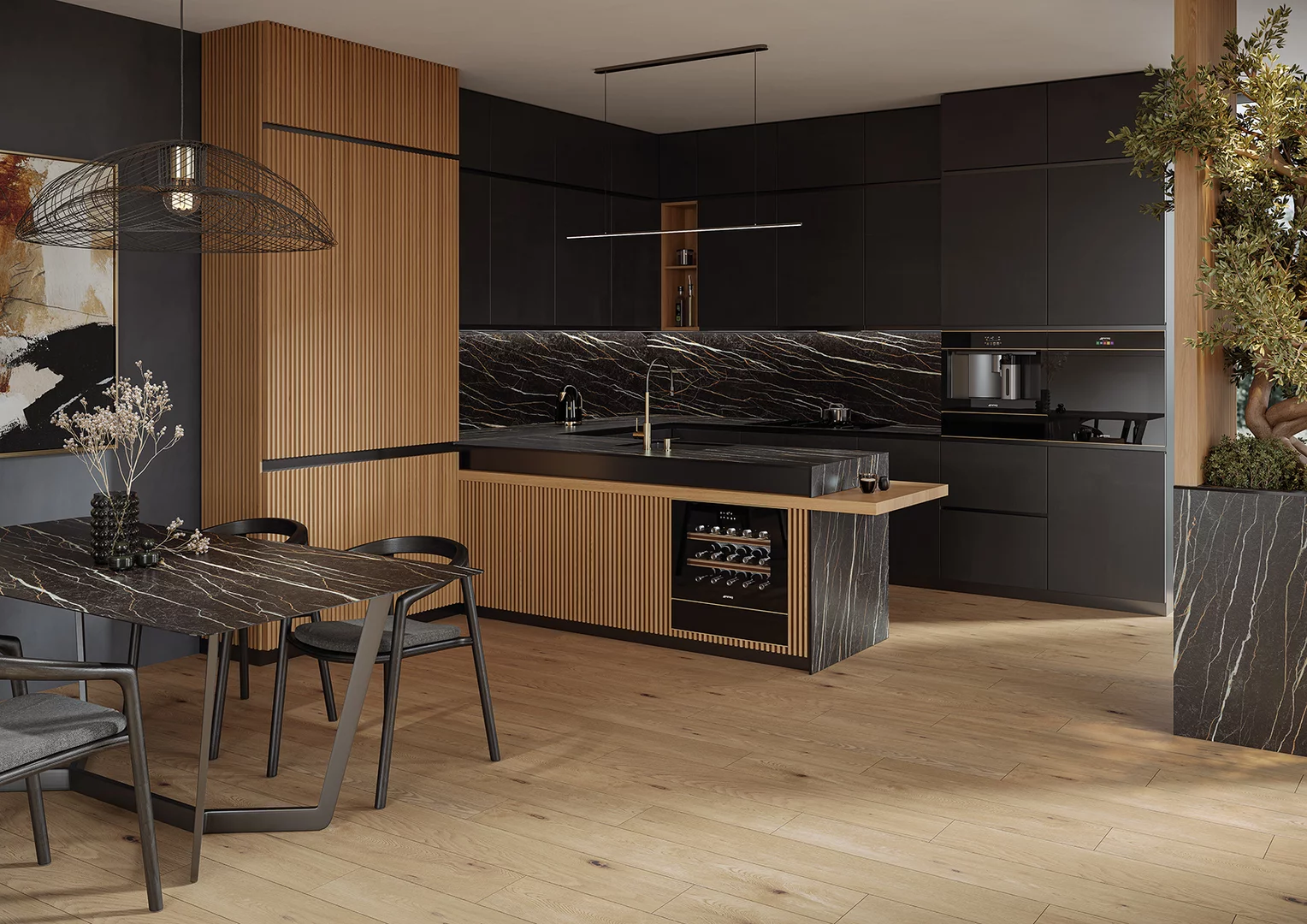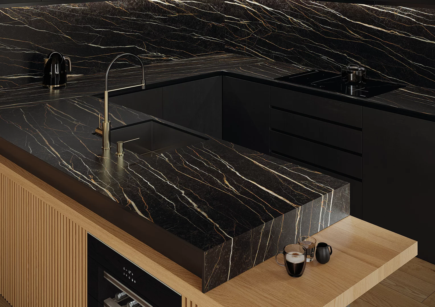 Przed Tobą wielkoformatowa elegancja inspirowana kamieniem saint laurent. Charakterystyczne, rdzawe żyłki i drobne detale na czekoladowo-brązowym tle tworzą efekt naturalnego kamienia, zachowując niezwykle oryginalną fakturę. Możesz połączyć spiek np. z jasnymi frontami, drewnem i cementem, osiągniesz efekt niepowtarzalnej harmonii. Nie bój się bawić materiałami, stwórz swój unikatowy, ponadczasowy styl. Całość dopełnij matowymi płytkami Pleasure z serii Monumental II. Postaw na naturalną elegancję, jeśli ważna jest dla Ciebie prawdziwa klasa.