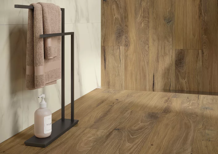 Kolekcja zawiera rektyfikowany format 198x1198 mm o matowej powierzchni oraz subtelną, uniwersalną strukturę nawiązującą do charakteru drewna.