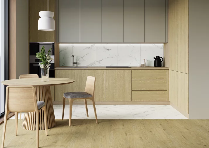 Decorwood to bardzo neutralna kolekcja inspirowana drewnem. Subtelne elementy dekoracyjne w postaci pojawiających się niewielkich sęków oraz spokojny rysunek słojów są idealnym rozwiązaniem do stworzenia urokliwego i przytulnego wnętrza. Ciepła kolorystyka Crema, Gold i Honey optycznie powiększa pomieszczenie oraz nadaje harmonii każdej przestrzeni mieszkalnej, nie narzucając własnej stylistyki. Drewno w tym wydaniu można łatwo łączyć z nowoczesnymi, minimalistycznymi, oraz z bardziej tradycyjnymi elementami wyposażenia wnętrz, podkreślając ich indywidualne cechy.
