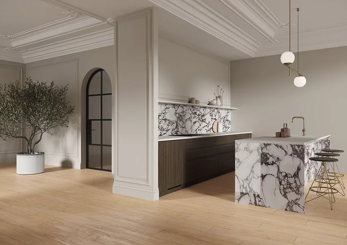 Jak połączyć białą kuchnię z marmurem?
