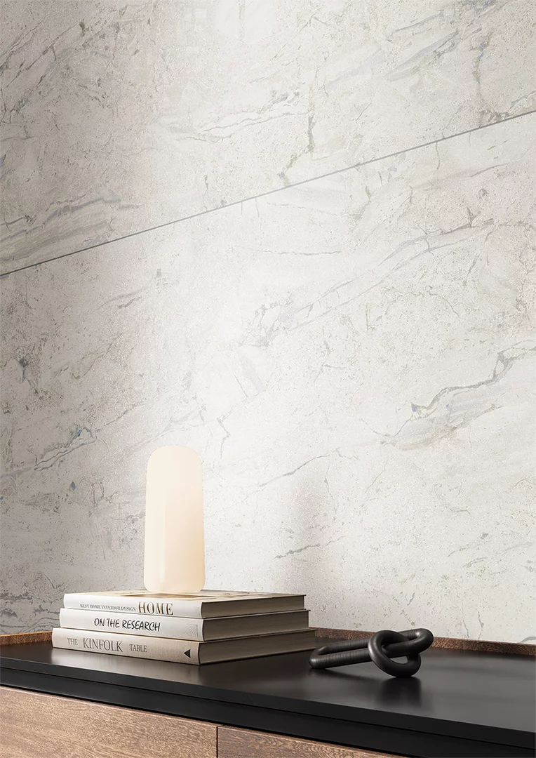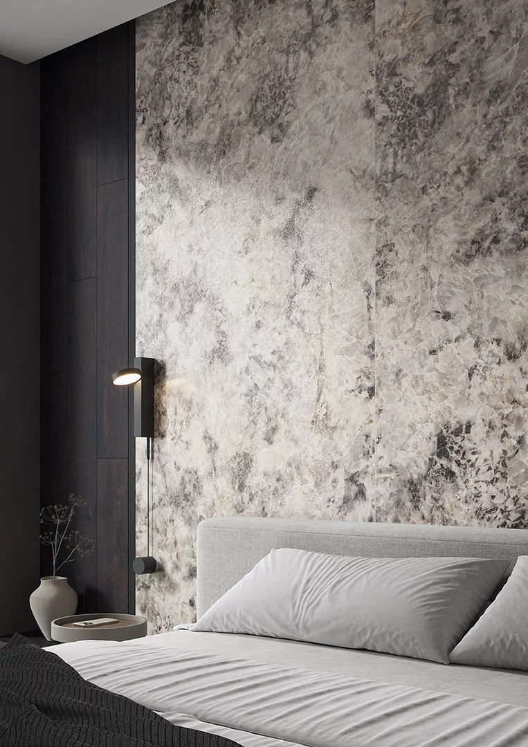 Эстетика светлого камня – это квинтэссенция элегантности и вечной красоты. Основываясь на графике и текстуре NORTH CATHEDRAL, создан узор, который изысканно и сдержанно проявляется в сияющей, серебристой ауре. Светлая тональность великолепно отражает свет, делая помещение более просторным и свежим. Тонкий рисунок прожилок придаёт интерьеру эксклюзивный характер, сохраняя при этом минималистичную утончённость. Узор превосходно сочетается как с современными, строгими композициями, так и с классическими интерьерами, а также с пространствами, насыщенными деталями, добавляя им нотки изысканной гармонии.