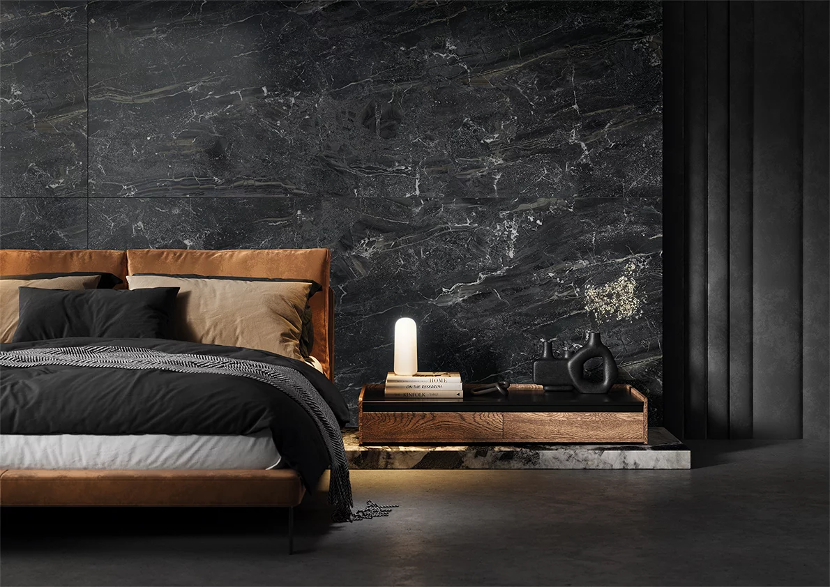 Изысканная текстура и вне времени привлекательный вид делают этот узор чрезвычайно востребованным и универсальным в использовании. Прекрасно сочетается как с современным минимализмом, так и с классическим интерьером, полным роскоши. В помещениях черный мрамор придает глубину, контрастируя со светлыми элементами обстановки. Особенно впечатляющий эффект создаётся в мягком освещении, которое подчёркивает разнообразное прожилкование, наполняя интерьер глубиной и таинственностью.