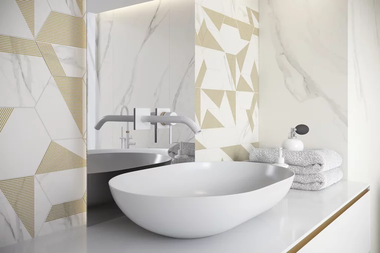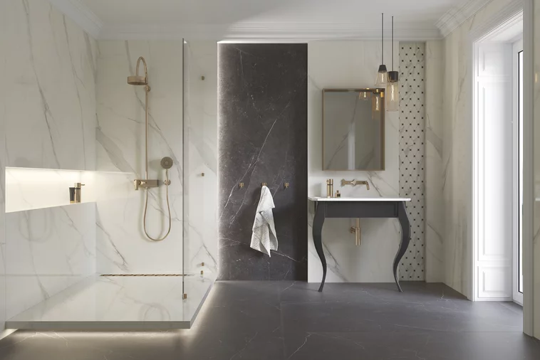 Белый мрамор – синоним роскоши и неподвластной врмемени элегантности – продолжает вдохновлять современных дизайнеров, оформляющих просторные интерьеры с помощью крупноформатной плитки. Выдержанная в белом цвете, коллекция Calacatta включает в себя напольную и настенную базовую плитку (размеры 59,8x59,8 см, 59,8x119,8 см, 89,8x89,8 см, 89,8x179,8 см), а также декоративные элементы: модные шестиугольники и классическую мозаику, подчеркивающие выбранный стиль ванной комнаты, гостиной или спальни. Тональные плитки украшены графикой, которая с предельной точностью передает сеть прожилок Statuario, красивейшего белого мрамора. Полированная поверхность плитки навевает ассоциации с дворцовым интерьером средиземноморской резиденции, а матовый вариант прекрасно вписывается в современную эстетику, гармонируя с фактурами дерева и металла.