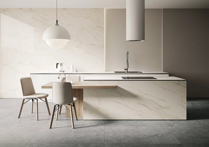 Calacatta – это вечный, классический камень, который на протяжении веков вдохновляет скульпторов, керамистов и дизайнеров интерьеров. Он вдохновил нас, а теперь пришло время порадовать и вас. Сделайте помещение, в котором вы живете, произведением искусства. Празднуйте его, восхищайтесь им, получайте удовольствие от общения с ним. Почувствуйте спокойствие и артистизм, исходящие от него. Пусть золотистые, теплые линии, окрашивающие камень, подчеркнут уникальность вашего места и его неповторимость.