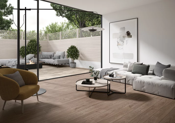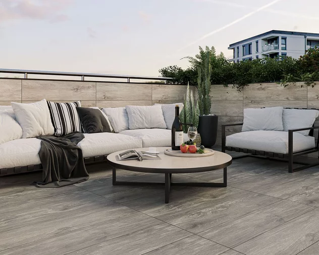 Коллекция Sherwood перенесет вас туда, где нет спешки, а в воздухе витает атмосфера расслабленности и спокойствия. Высокая степень аутентичности стала возможной благодаря использованию характерной структуры древесины, уникальной графики зерен и мягких серо-бежевых тонов, отражающих натуральное сырье. Плитка Sherwood формата 29,5x119,5 см для наружного применения идеально подходит для создания вдохновляющих террас, балконов и садов, интегрированных с природой и оформленных в духе современных дизайнерских тенденций.