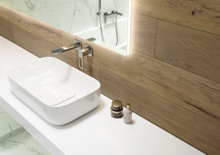 Дополняет коллекцию декоративная настенная плитка формата 29,8x59,8 мм в светлой гамме White. Она обладает феноменальным эффектом мерцающего узора, который также ощущается на ощупь.