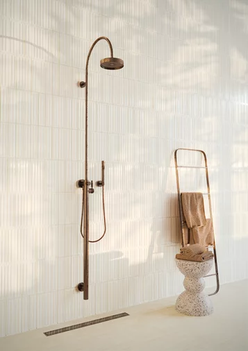Коллекция дополнена керамической плиткой натурального белого цвета.