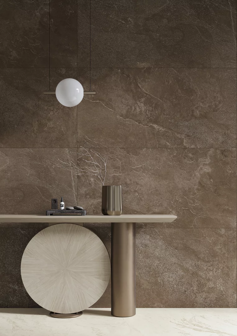Плитка доступна в кольорі Brown у форматах: 598x1198 мм і 1198x1198 мм, її поверхня оздоблена матовою глазур'ю з ніжною, сатиновою фактурою, надзвичайно приємною на дотик. Все це доповнюють делікатні, блискучі спецефекти, які додають глибини та елегантності. Coffee Field – це колекція, яка гармонійно поєднується як зі сміливими, сучасними, так і з класичними дизайнами інтер'єрів.